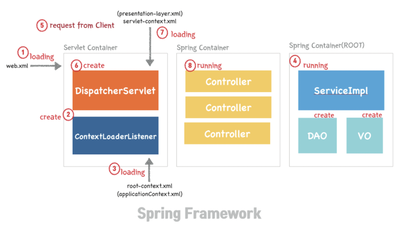 - 서블릿들을 모아 관리 객체를 생성, 초기화, 호출 종료하는 생명주기 관리