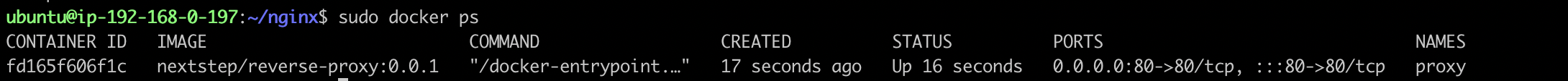$ docker run -d -p 80:80 --name proxy nextstep/reverse-proxy:0.0.1