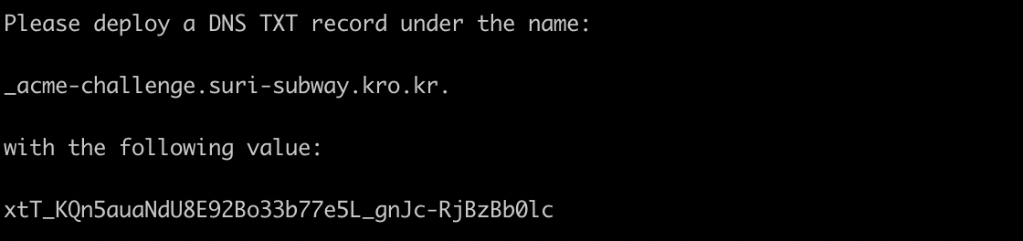 - 위의 명령어를 실행 후 유효한 URL 인지 확인을 위해 DNS 서비스에 추가한다.