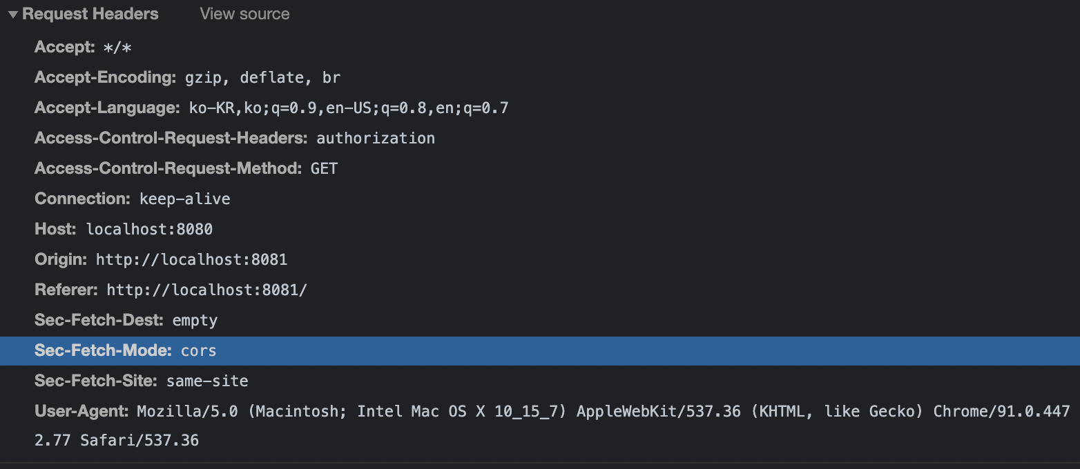 - Prefilght Request는 실제 요청 전에 인증 헤더를 전송하여 서버의 허용 여부를 미리 체크하는 테스트 요청이다.