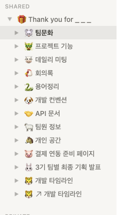 팀이 결성되고 나서 이틀 뒤에 '팀별 최종 기획 발표'를 해야했다. 서비스에 대한 설명, 팀문화, 유저 시나리오, 요구 사항 명세서를 작성해야 했다. 특히 요구 사항 명세, 기능 명세는 6주 동안 개발 가능하게 산정해야 했다. 이러한 내용들은 팀 노션에 정리 하기로 하였다!