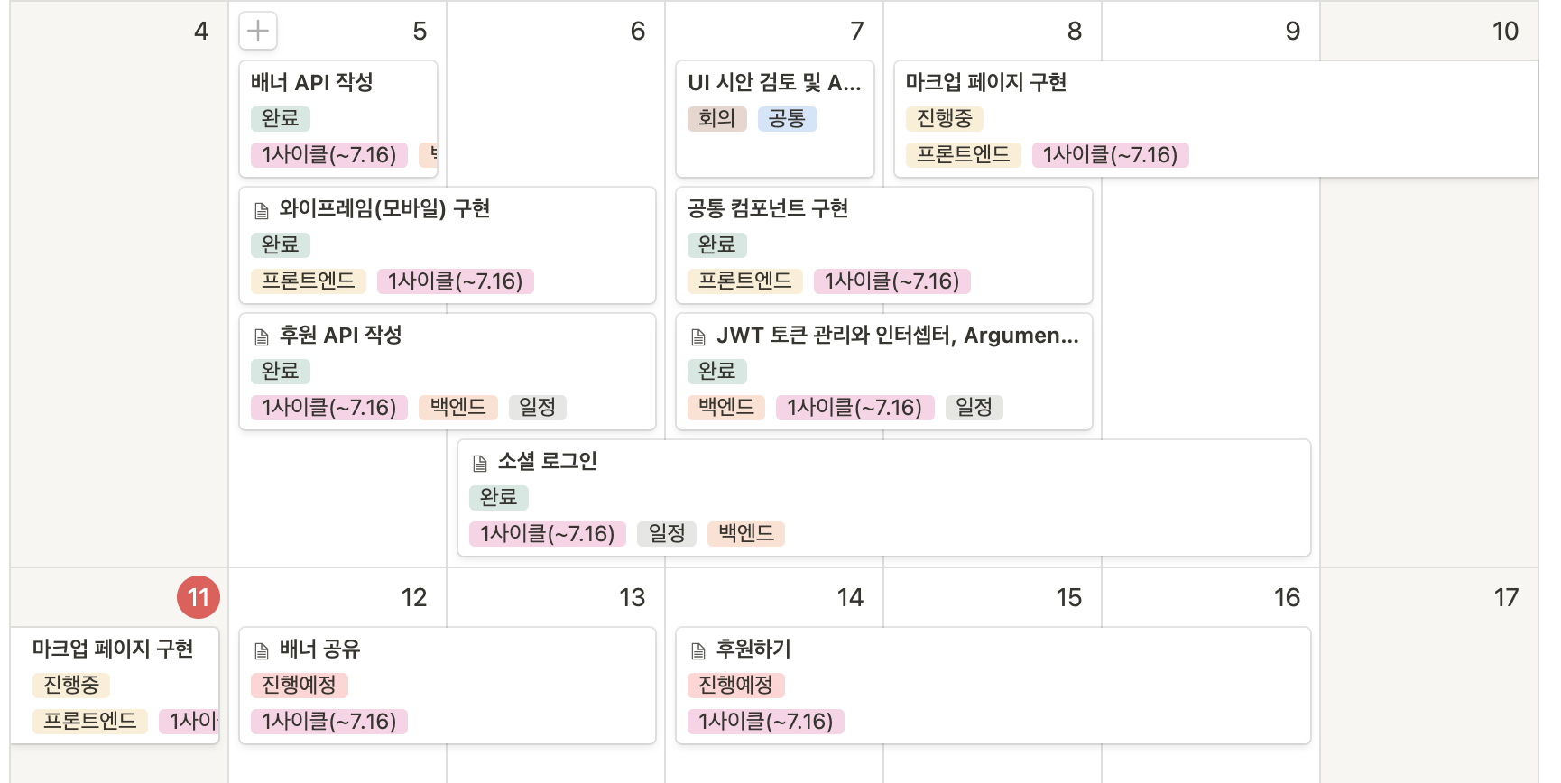 백엔드는 4명의 크루들로 구성되어 있다. 생성된 이슈들 중에서 분업이 필요한 이슈는 2명씩 짝 프로그래밍으로 구현하도록 하였다.