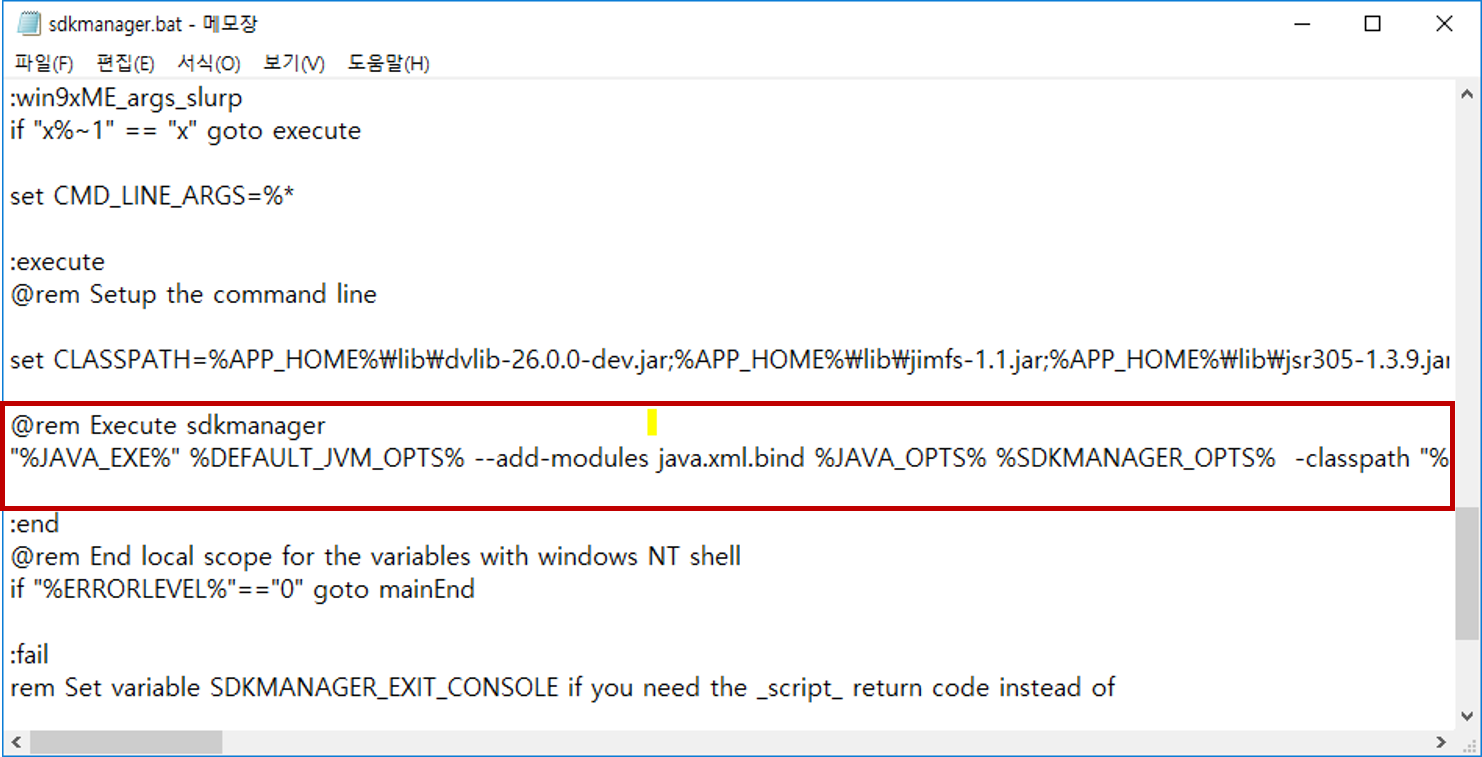 그래서 인터넷 검색 결과 AppData\Local\Android\Sdk\tools\bin에 있는 sdkmanager.dat파일을 메모장으로 연뒤