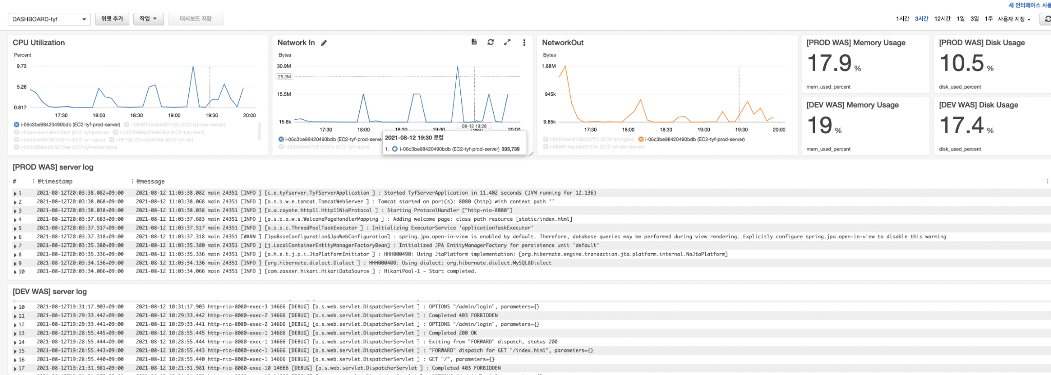 - 대시보드를 구성하여 수집 정보를 한눈에 볼 수 있다.