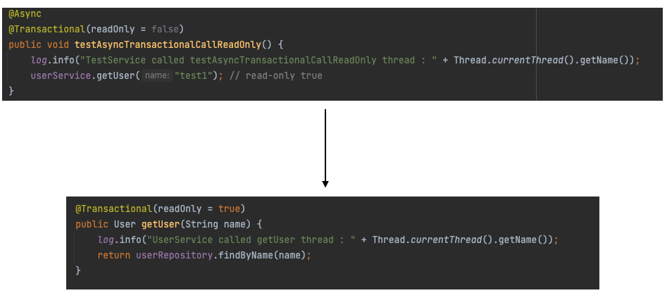 @Async Read-Only False 메소드에서 Read-Only True 메소드를 실행