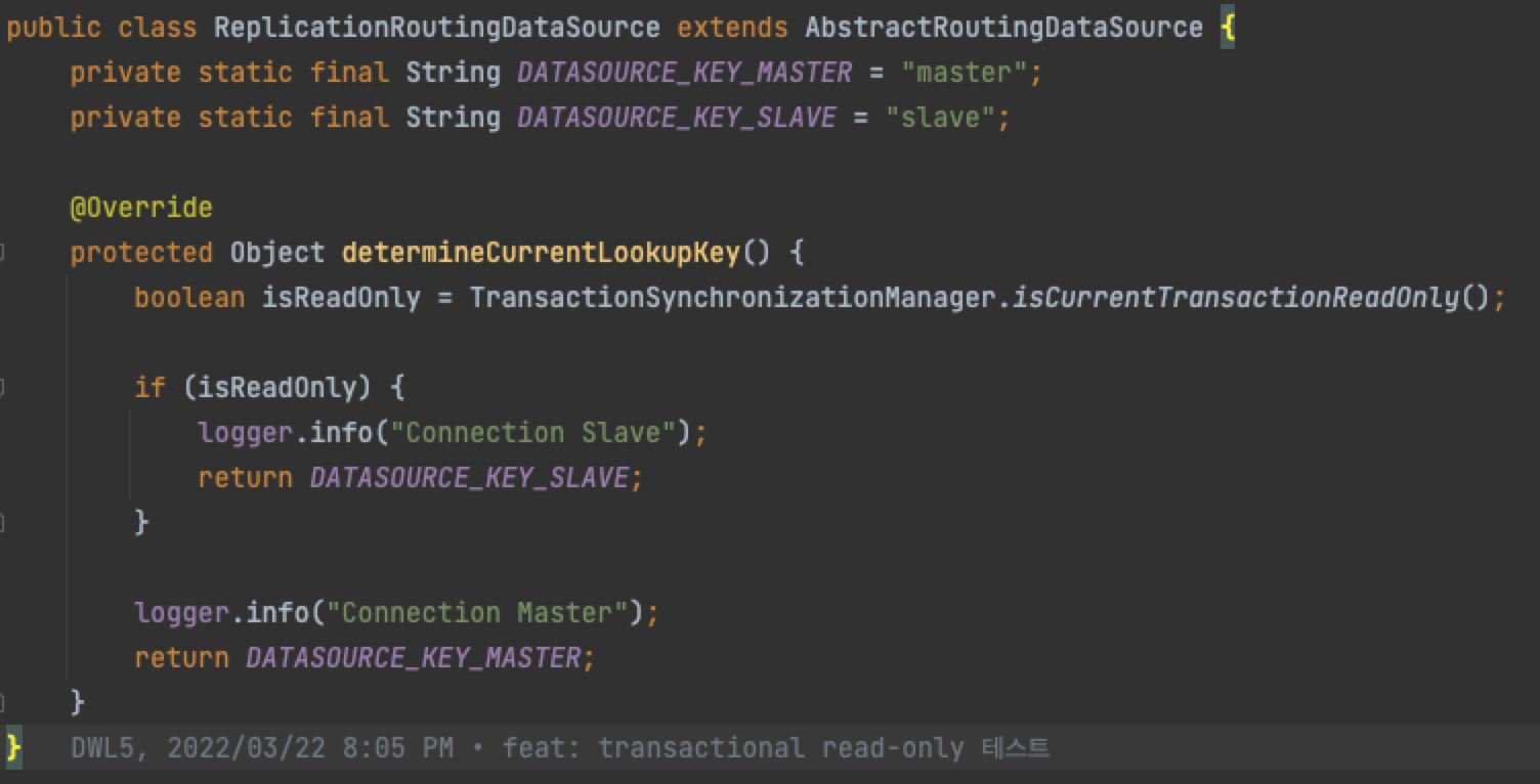 - Read-Only True시 Slave DB와 연결, Read-Only False시 Master DB와 연결 하도록 구성