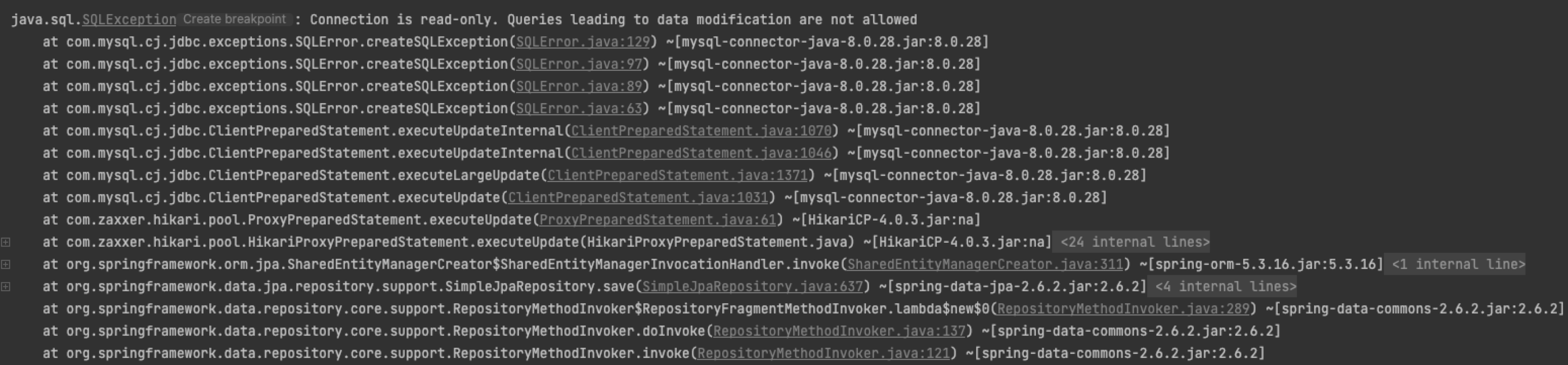 - Connection is read-only. Queries leading to data modification are not allowed. 에러 발생