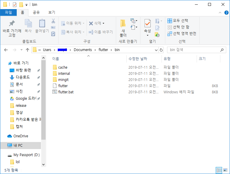 저의 경우에는 경로가 C:\Users\(파란부분)\Documents\flutter\bin 이 되겠네요.