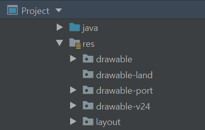 Project단위로 파일들을 보시면, drawable-land와 drawable-port 폴더가 생성된 것을 확인 할 수 있습니다. 그러면 아까 사용하려는 이미지를 drawable-port에만 넣어 주면, landscape모드에서는 이미지가 보이지 않게 됩니다.