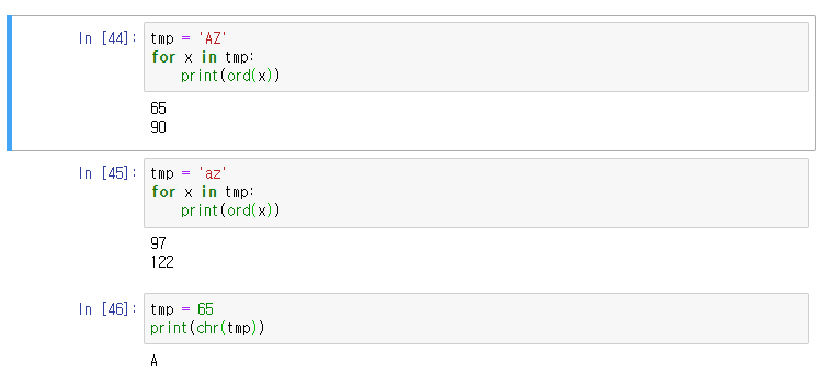문자 > 아스키코드 ord() / 아스키코드 > 문자 chr()