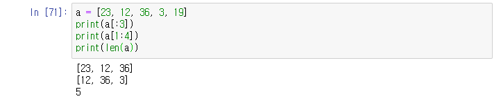 아래와 같이 리스트를 슬라이싱 할 수 있으며, len()을 사용하여 리스트의 길이를 알아 낼 수 있다.