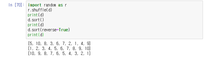 sort() 함수를 통해 오름차순으로 정렬 할 수 있으며, reverse=True 값을 인자로 주면 내림차순으로 정렬 할 수 있다.