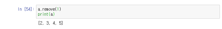 인자로 1을 주어 인덱스 0에 위치하고 있던 값 1이 제거됨을 확인 할 수 있다.