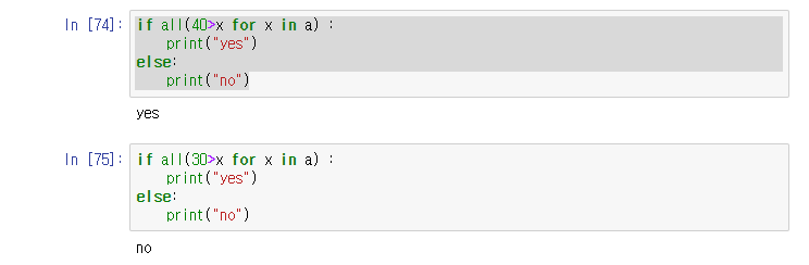 all은 해당 for문의 값이 주어진 조건을 모두 만족해야 true를 리턴한다. 하나라도 만족 하지 않는다면 false를 리턴 한다.